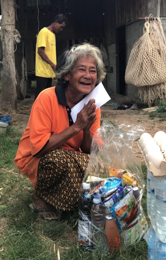 โดยมอบเครื่องอุปโภคบริโภคจำพวกข้าวสารอาหารแห้ง ไข่ไก่ น้ำดื่ม แพมเพิส แผ่นรองกันซึมและเงินจำนวนหนึ่งให้กับคนชรา ผู้พิการ คนป่วยติดเตียง จำนวน 5รายคือ